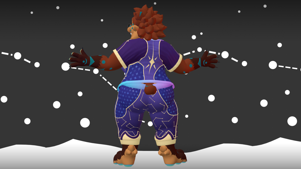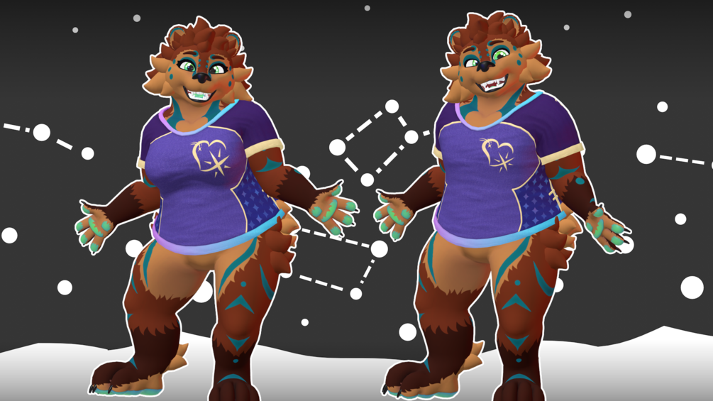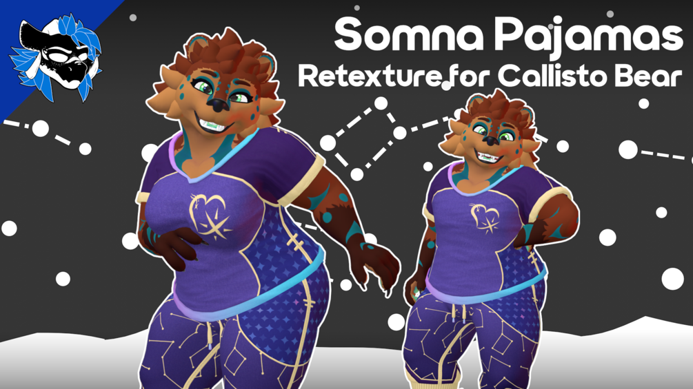 Snuggle up under the stars with this cozy Retexture for The Callisto Bear's base clothing! Themed for Furality Somna, some simple audio link support is built in!