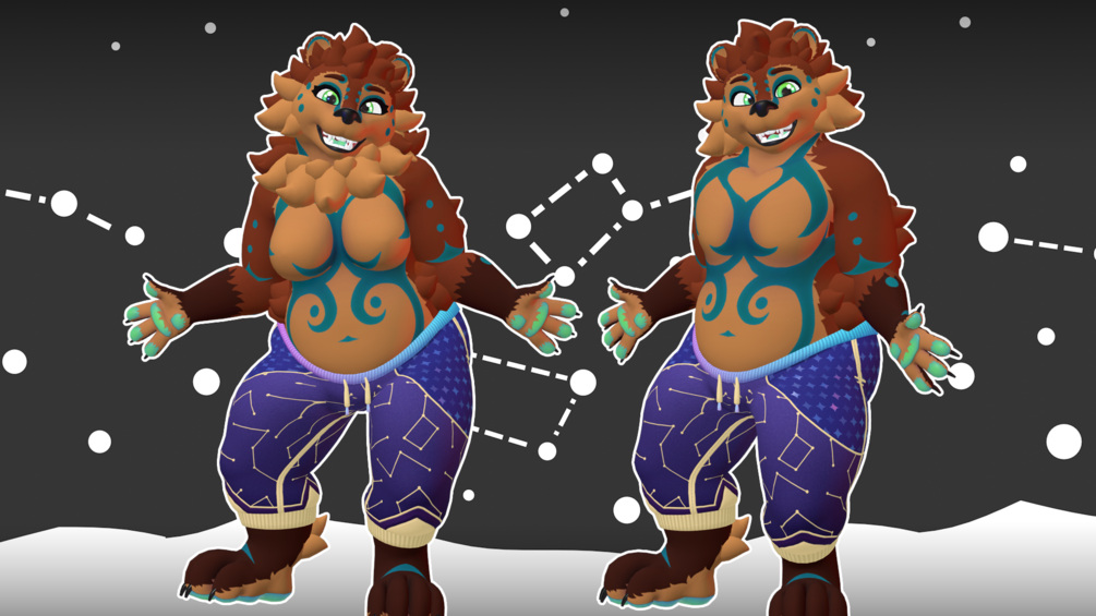 Snuggle up under the stars with this cozy Retexture for The Callisto Bear's base clothing! Themed for Furality Somna, some simple audio link support is built in!